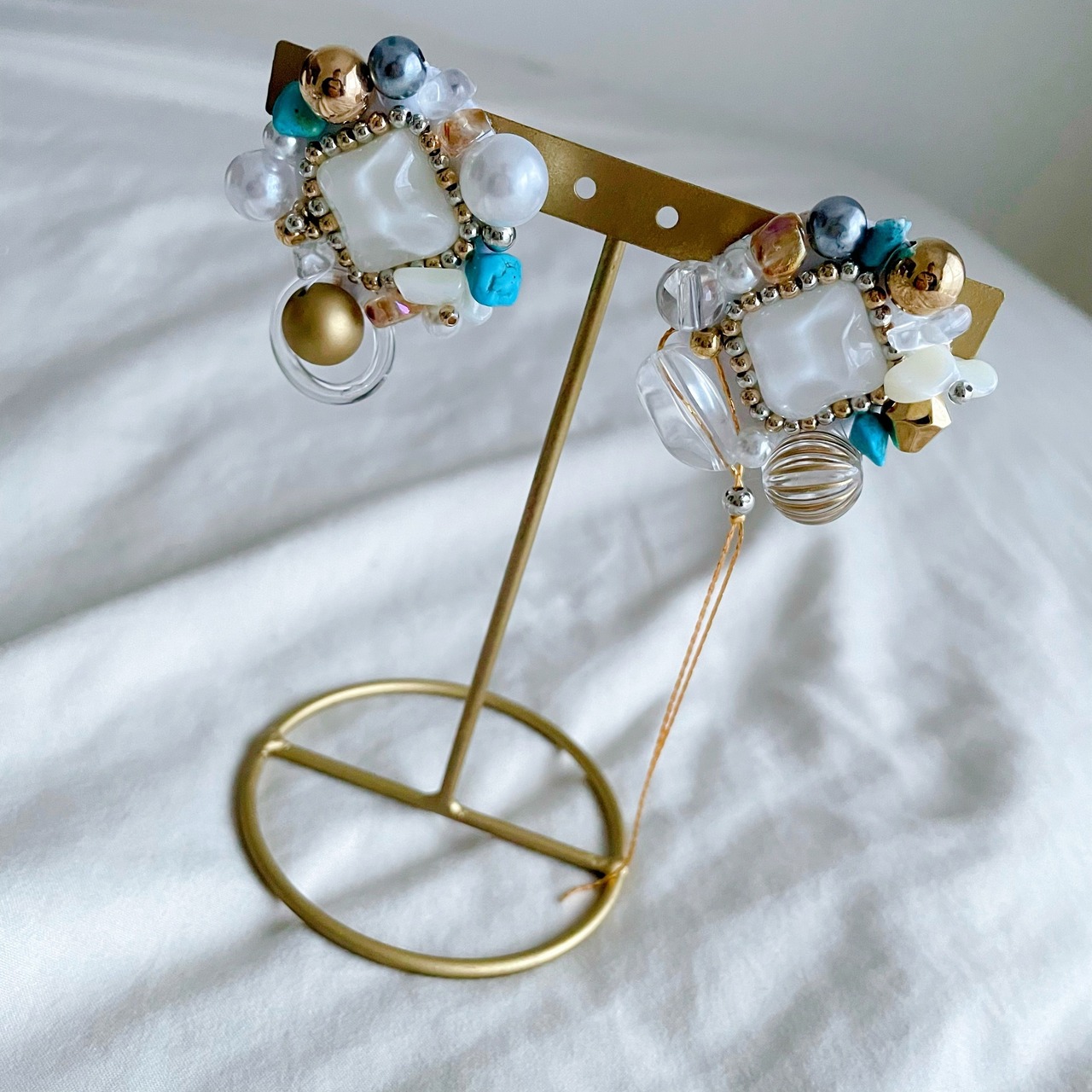 ・ハンドメイドアクセサリーはとても繊細です。強い力を加えると壊れてしまう可能性がございます。