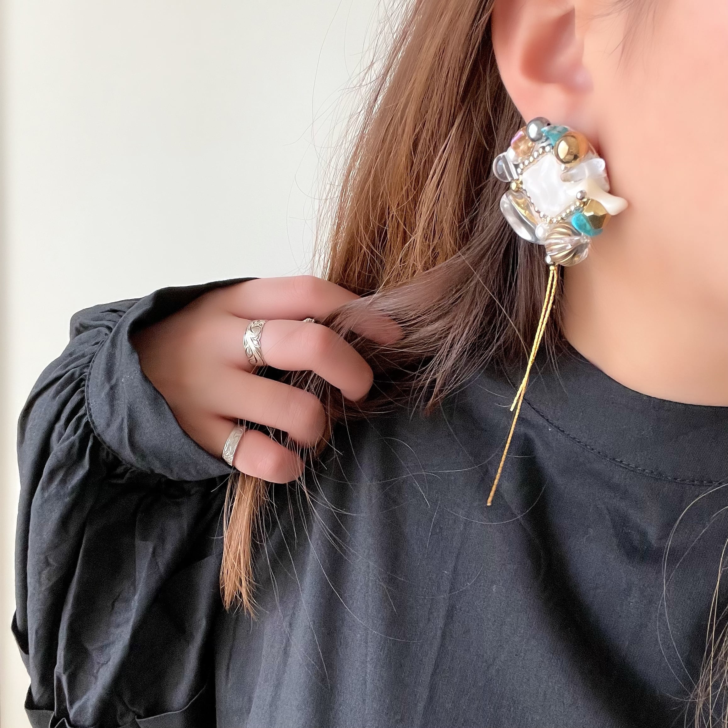 ・アクセサリーに使用している金具は主にメッキ素材です。アレルギーをお持ちの方はご注意ください。
