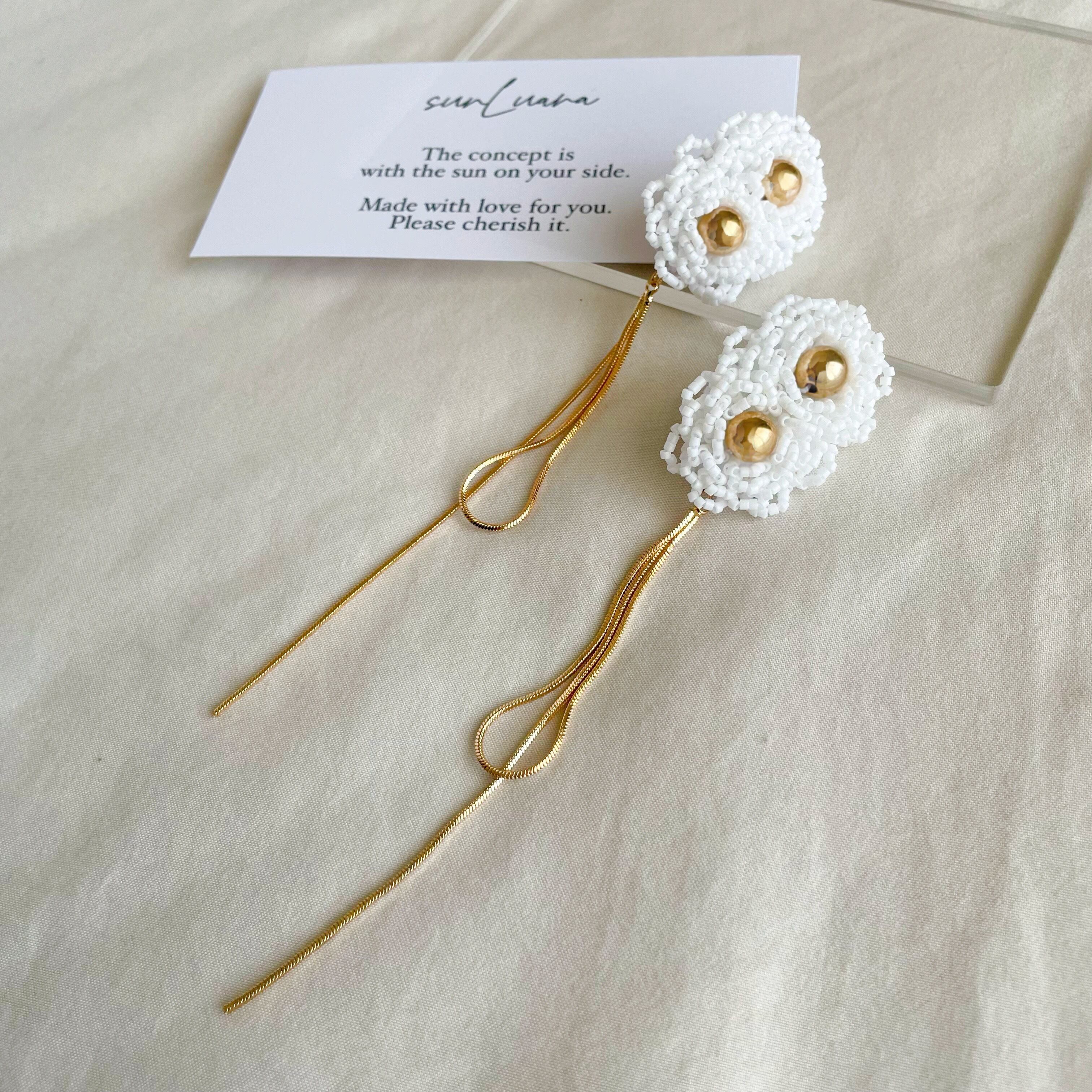 ・ハンドメイドアクセサリーはとても繊細です。強い力を加えると壊れてしまう可能性がございます。